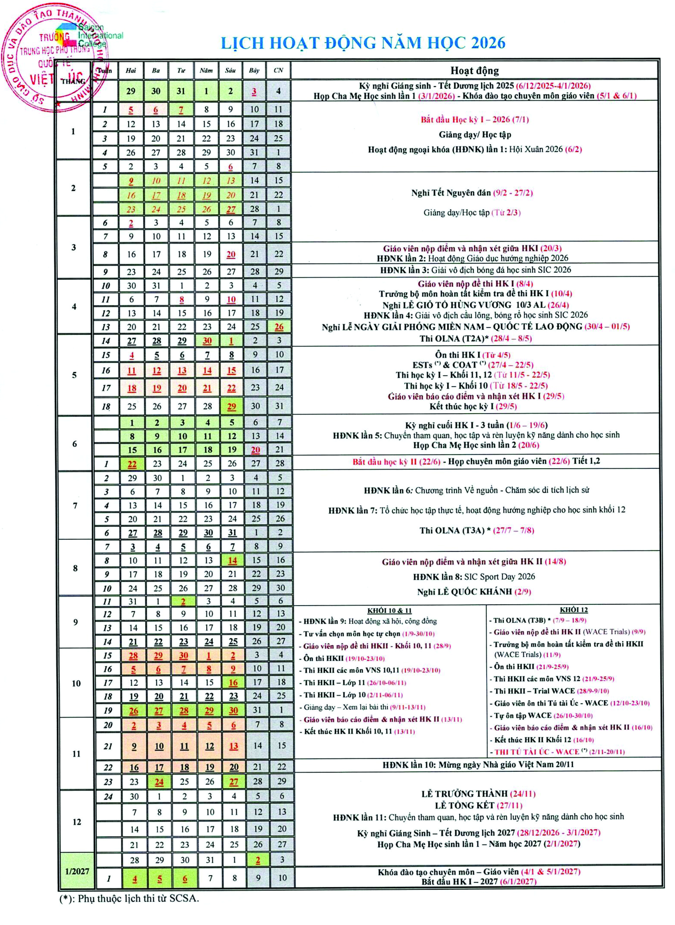 Lịch hoạt động 2026